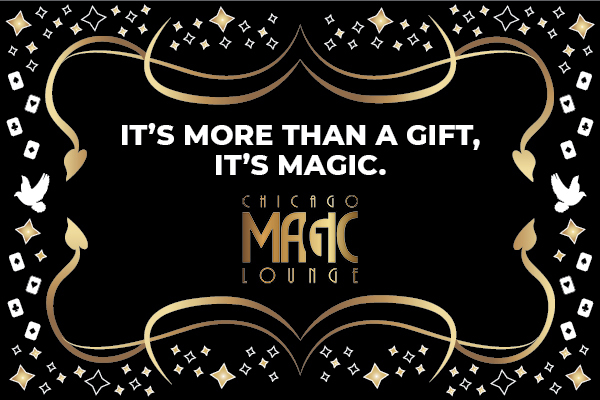Dedicated to the art of sleight of hand, prestidigitation, and Chicago’s contribution to the magical arts, the Chicago Magic Lounge is more than a magic theater. When you walk in, you step out of the everyday and into a mysterious, magical experience that is both retro and fashionable. From the secret doors and performance bar to the mind-blowing stage shows and walk-around table magic, your guests will experience an evening that they won’t soon forget. Gift certificates have no expiration date and are redeemable for tickets to any of our shows, classes, and merchandise. Not valid for food or beverage purchases. Gift certificates are non-refundable.